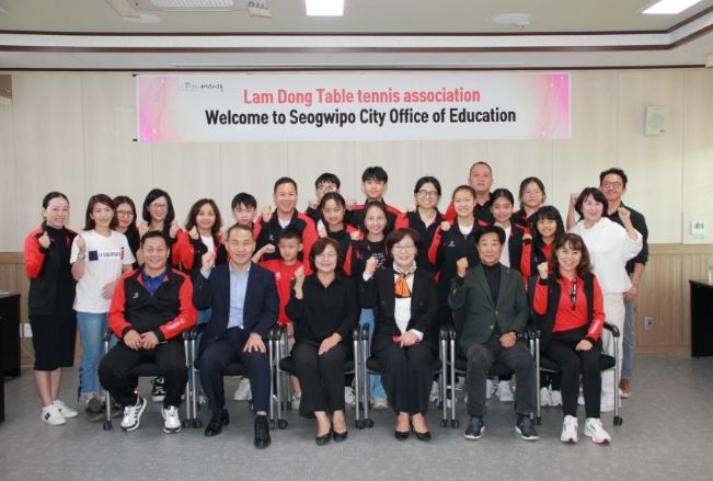 [제주교통복지신문 박희찬 기자] 서귀포시교육지원청은 19일 지원청 제2회의실에서 서귀포 공천포 체육관에서 열리는 친선경기를 위해 서귀포 지역을 방문한 베트남 남동 탁구협회 선수단과의 대화의 시간을 가졌다.