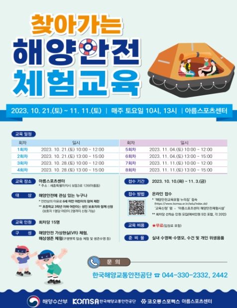 [제주교통복지신문 박상현 기자] 해양수산부는 10월 21일부터 11월 11일까지 세종특별자치시 아름스포츠센터에서 ‘찾아가는 해양안전체험시설’을 추가로 운영한다.