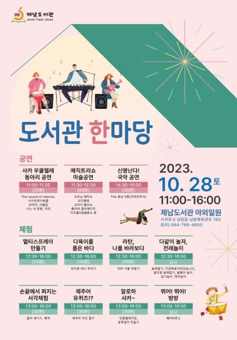 [제주교통복지신문 박희찬 기자] 제주도교육청 제남도서관은 지역주민이 함께하는 문화행사 운영으로 소통과 화합의 장을 마련하고자 10월 28일 11시부터 도서관 야외잔디밭에서‘2023 도서관 한마당’행사를 운영한다.