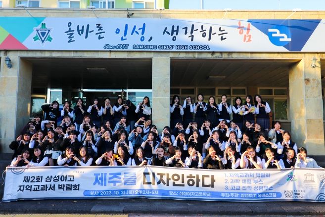 [제주교통복지신문 박희찬 기자] 제주도교육청 국제화교과특성화학교이자 유네스코학교인 삼성여자고등학교 유네스코 학생팀은 21일 학교에서 지역교과서‘함께 제주 노닥이기 Ⅲ’를 발표했다.