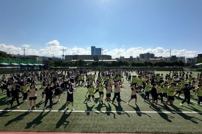 [제주교통복지신문 박희찬 기자] 제주도교육청 제주서중학교는 25일 독도의 날을 맞이하여 1학년 전학생과 몇몇 3학년 학생들이 참가하여 운동장에서‘독도 플래시몹’을 실시했다.