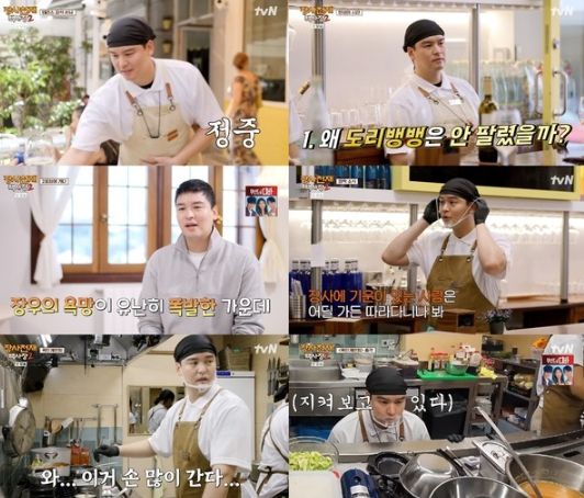 장사 첫날, 주방의 컨트롤타워로 활약한 이장우는 백종원의 보조를 하는 동안에도 유리의 안전까지 살피는 세심한 면모를 보였다.