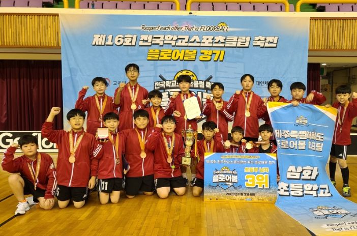 [제주교통복지신문 박희찬 기자] 제주도교육청 삼화초등학교 남학생 플로어볼팀은 3일 경기도 대진대학교에서 개최된 제16회 전국학교스포츠클럽축전 플로어볼 대회(남초부)에서 전국 3위(동메달)을 차지했다.