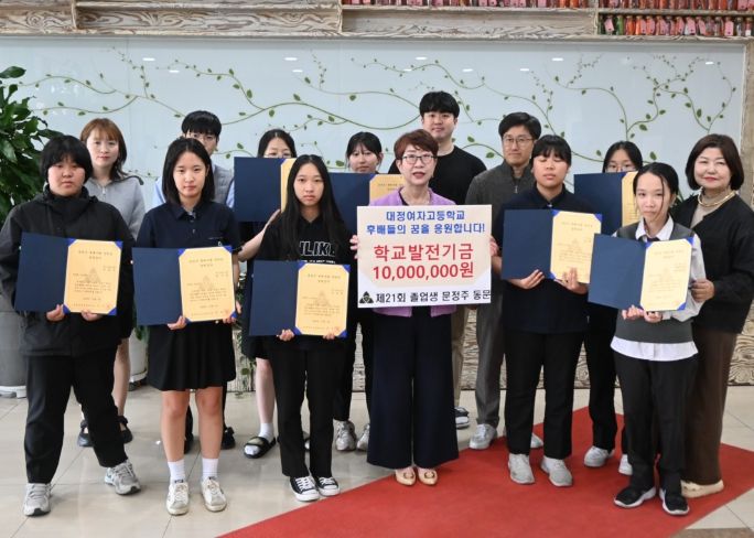 대정여고 제21회 졸업생인 문정주 동문은 교직생활을 마무리하며 “고등학교 시절 꿈을 키워 교단에 서게 됐고, 앞으로 후배들도 힘든 상황이 있더라도 각자의 꿈을 키워 사회의 다양한 분야에서 빛이 나는 존재가 되기를 바란다”고 하면서 후배 사랑 장학금 기탁 의사를 밝혔다.