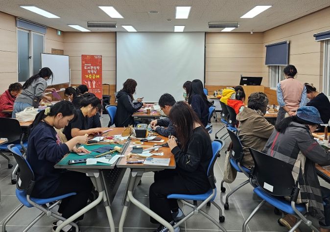 ㈜수국수국 공방카페 김잔디, 정경희 강사가 진행하는 도서관 창작 작업실 가죽공예는 12월 1일까지 매주 금요일마다 19시부터 21시까지 총 4회 동안 진행될 예정이다.