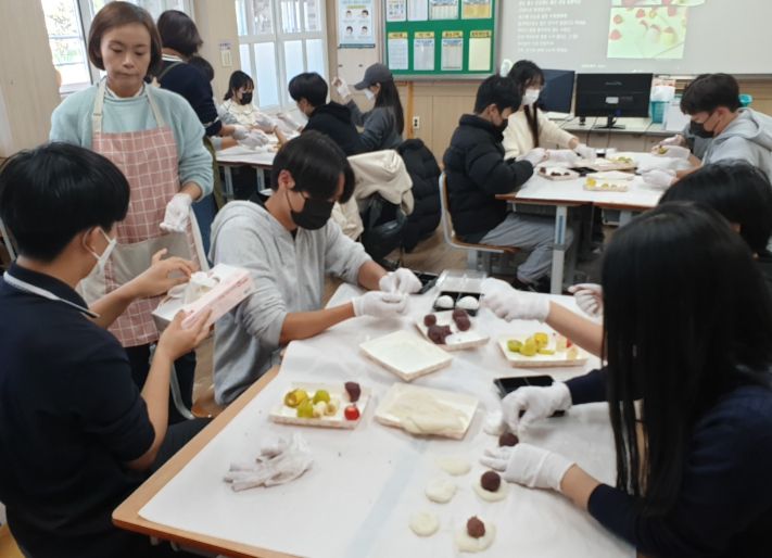 [제주교통복지신문 박희찬 기자] 제주도교육청 신엄중학교 학부모회는 8일 학교를 찾아 3학년 학생을 대상으로‘과일 찹쌀떡 만들기’체험 활동 프로그램을 운영하여 학기 말 교육과정이 풍성하고 내실 있게 운영될 수 있도록 지원했다.