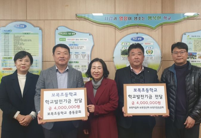 이 발전기금은 보목 마을회에서 주최한 제31회 보목마을 한마당 가을 축제 후원금과 보목초 총동문회 기금으로 마련한 것으로 보목초등학교 총동문회에서 600만원, 보목 청년회에서 200만원을 기탁했다.