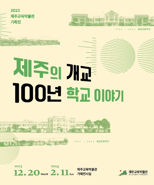 [제주교통복지신문 박희찬 기자] 제주도교육청 제주교육박물관은 2023년 기획전 '제주의 개교 100년 학교 이야기-김녕초, 동남초'를 12월 20일부터 2024년 2월 11일까지 제주교육박물관 기획전시실에서 개최한다.