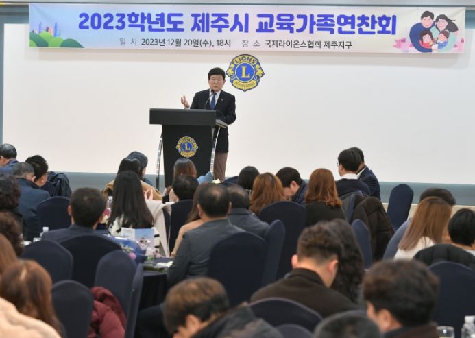 [제주교통복지신문 박희찬 기자] 제주시교육지원청은 '2023학년도 제주시 교육가족 연찬회'가 제주시학교운영위원장협의회 주관으로 20일 국제라이온스클럽 제주지구에서 제주시 관내 유치원, 각급 학교 운영위원 및 학부모회 임원 등 교육가족 280여명이 참석한 가운데 개최됐다고 밝혔다.