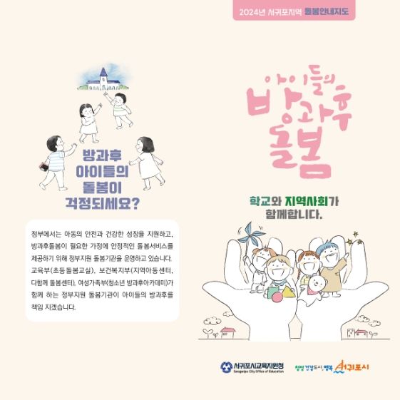 [제주교통복지신문 박희찬 기자] 서귀포시교육지원청 학교지원센터는 12월 21일부터 초등학교 재학생 학부모와 2024학년도 신입생 학부모에게 서귀포지역 돌봄안내지도 1만부를 배부할 예정이다.