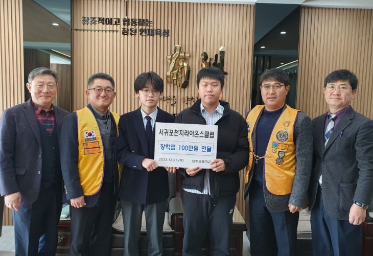 [제주교통복지신문 박희찬 기자] 제주도교육청은 서귀포천지라이온스클럽에서 21일 남주고등학교를 방문하여 장학금 100만원을 전달했다고 밝혔다.
