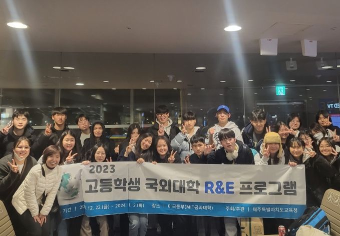 [제주교통복지신문 박희찬 기자] 제주특별자치도교육청은 2023년 12월 22일부터 2024년 1월 2일까지 12일 일정으로 미국 보스턴에 있는 매사추세츠 공과대학(Massachusetts Institute of Technology)에서 도내 고등학생 24명이 참여하는 국외대학 R&E 프로그램을 운영하고 있다.