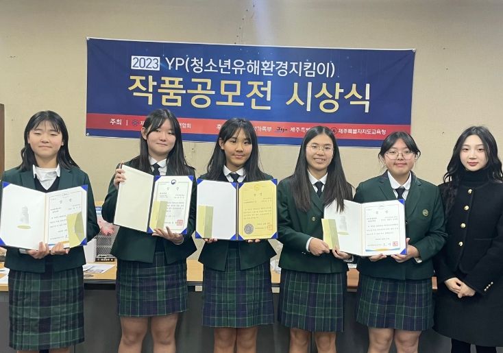 [제주교통복지신문 박희찬 기자] 제주도교육청 제주동중학교는‘2023년 YP(청소년스스로지킴이) 작품 공모전’에서 우수한 성적을 거둬 12월 28일 제주한국청소년연합회에서 열린 시상식에 참석했다.