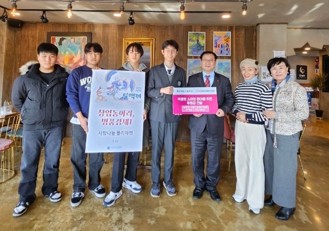 이번 후원금은 제26회를 맞이하는 본교 일맥제에서 송은경, 권민성 교사를 주축으로 명품경제(15명), 창업동아리(13명) 1학년 학생들이 바자회 부스를 운영하면서 얻은 수익금이다.