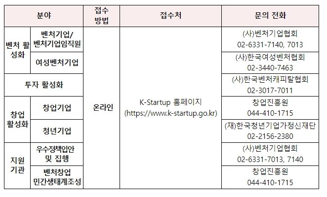 포상을 희망하는 대상자는 공적조서 등 제출서류를 구비해 케이(K)-스타트업 누리집등을 통해 온라인 접수하면 된다.