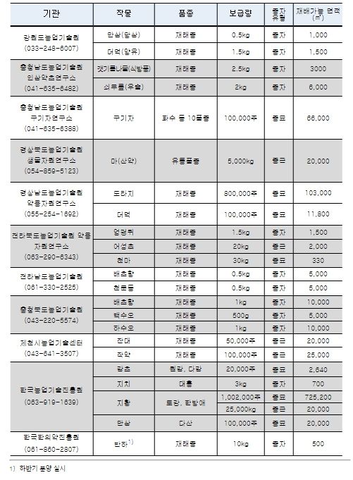 종자 신청은 기관에 따라 공급 시기와 가격이 다르므로 원하는 작목을 확인한 뒤 해당 기관으로 직접 신청해야 한다.