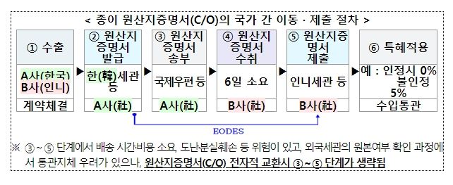 동 시스템을 통해 원산지정보가 전자적으로 실시간 교환되면, 우리 수출기업은 인니 관세당국에 ‘종이’ 원산지증명서를 제출하지 않아도 한-인니 포괄적 경제동반자 협정(CEPA) 특혜관세를 적용받을 수 있다.