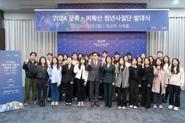 [제주교통복지신문 박상현 기자] 외교부가 주최하고 동아시아연구원(EAI)이 주관하는 '2024 군축·비확산 청년사절단' 발대식이 3월 25일 외교부 18층 서희홀에서 개최됐다. 외교부는 국내외 대학(원)생 31명을 청년사절로 임명했다. 청년사절단은 선서를 통해 성실하고 책임 있는 자세로 활동에 임하겠다는 각오를 다졌다.