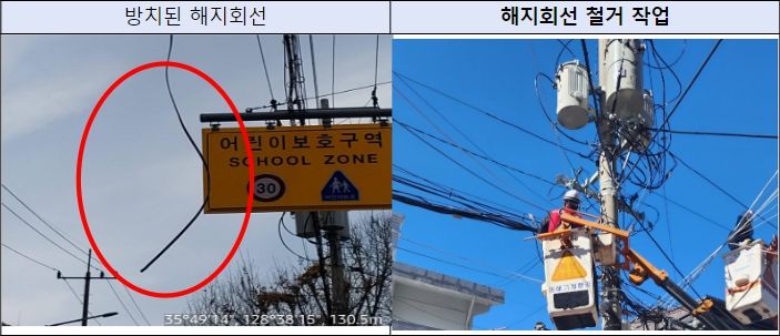 누적 방치된 해지회선(폐·사선)은 보행자의 안전을 위협하고 전봇대가 쓰러지는 사고로도 이어질 우려가 있어, 신속하고 체계적으로 철거하기 위해 올해 상반기 중 ‘해지회선 통합철거 및 기록‧관리시스템’을 구축하고, 전국의 전봇대와 건물 등에 끊어지거나 늘어진 해지회선을 철거해나갈 계획이다.