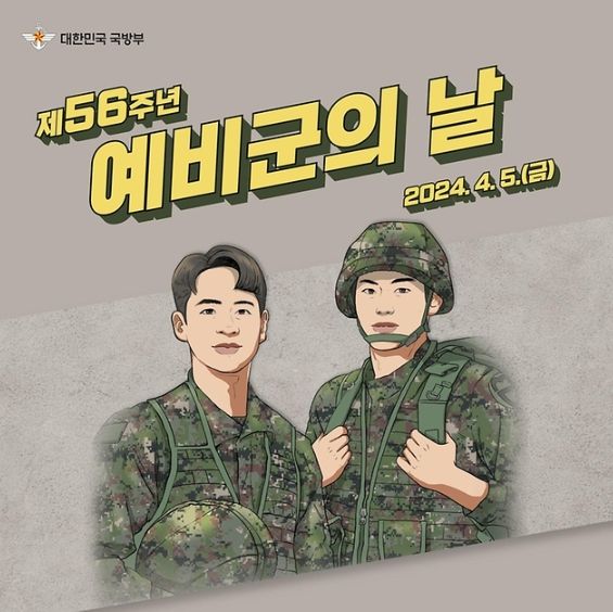 2024년 4월 1일부터 4월 7일까지는 예비군 주간이며 4월 첫째 금요일인 4월 5일은 ’24년 제 56주년 예비군의 날입니다.