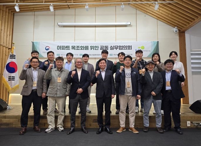 이날 실무협의회에서 국립산림과학원은 국가 탄소중립 실현 및 국민 삶의질 향상을 위해 목조 등 친환경 건축물의 확대는 필수적으로 요구되는 시대적 흐름임을 강조하고, 목조아파트 실현과 관련한 우리나라 목조건축의 수준 및 기술·제도 현황에 대해 소개했다. 특히 양 기관의 건축, 목재 분야 전문가 1:1 매칭을 통해 심도있는 논의가 이루어졌으며, 향후 지속적 협업을 약속했다.