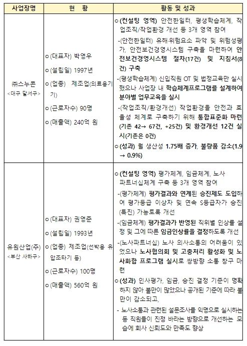 아울러, 근로자들의 만족도와 신뢰도를 향상시키기 위해 평가와 연계된 승진 및 임금체계를 도입한 유원산업(주)의 사례도 발표됐다.