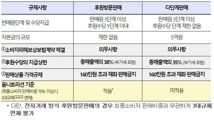 ❶ 다단계 및 후원방문판매 개별재화 가격제한 상향