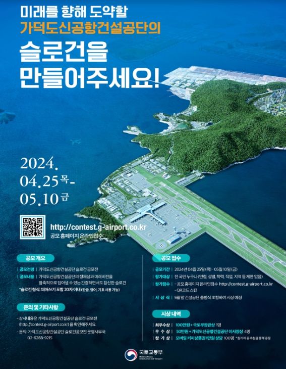 [제주교통복지신문 송한신 기자] 국토교통부는 4월 25일 「가덕도신공항건설공단법」 시행에 맞춰, 4월 25일부터 5월 10일까지 가덕도신공항건설공단 슬로건 대국민 공모전을 진행한다.