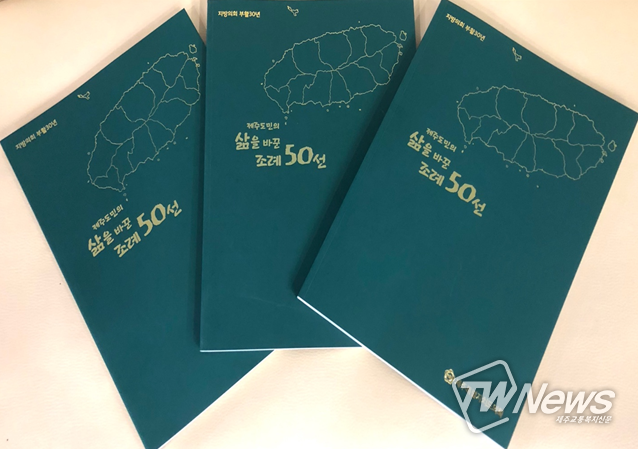 [제주교통복지신문 서유주 기자] 제주도의회는 2021년 지방의회 부활 30주년을 맞아 조례에 담긴 지난 30년간의 주요성과를 공유하기 위하여 「제주도민의 삶을 바꾼 조례50선」을 선정하여 책자로 발간했다고 밝혔다.