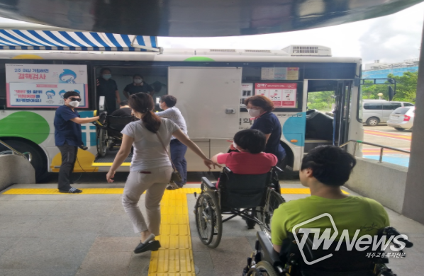 이번 검진은 대한결핵협회 제주도지부와 연계하여 결핵검진 사각지대에 놓인 장애인들에게 이동검진 차량을 이용해 흉부X선 검진을 시행했다.