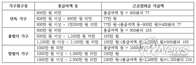 정부는 저소득 가구의 근로의욕을 고취하고 자녀 양육을 지원하기 위해 소득·재산 요건을 충족하는 가구에 근로·자녀장려금을 지급하고 있다.