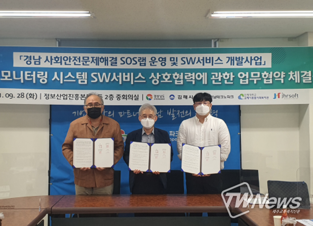 경남도에 따르면 28일 경남테크노파크-JHR 소프트-김해시-김해시종합사회복지관은 업무협약을 통해 JHR 소프트에서 개발한 공동 급식 식재료 모니터링 플랫폼 서비스를 2022년부터 김해시종합사회복지관 식당에서 시범운영 하기로 했다.