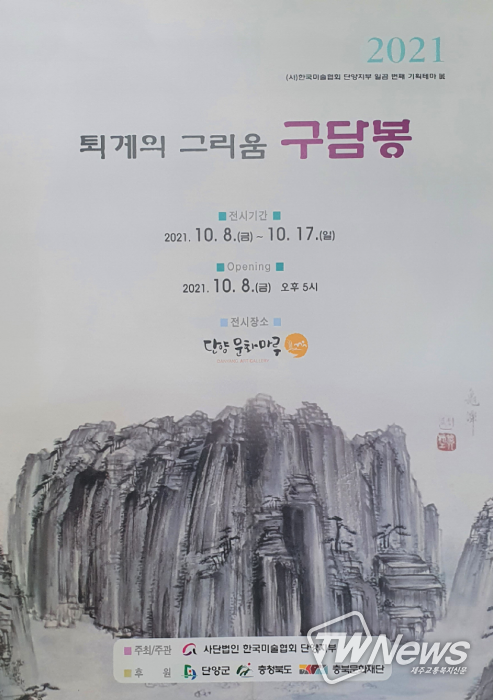 이번 기획전에는 단양팔경 중 한 곳인 구담봉을 주제로 조선 초기 단양군수를 지낸 ‘퇴계의 그리움’을 표현한 서양화, 한국화, 공예·조각 등 20여점의 작품을 선보인다.