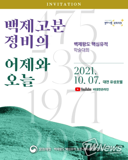 [제주교통복지신문 김지홍 기자] 문화재청은 10월 7일 오전 10시 30분 대전 유성호텔에서 ‘백제고분 정비의 어제와 오늘’을 주제로 학술대회를 개최하고, 문화재청과 문화유산채널 유튜브에서 온라인 생중계한다.