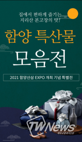 [제주교통복지신문 김지홍 기자] 함양군은 지난 10월 1일부터 티몬, 롯데 등 온라인 쇼핑몰에서 2021함양산삼엑스포 개최 기념 함양 농특산물 온라인 특별기획전을 실시한다고 밝혔다.