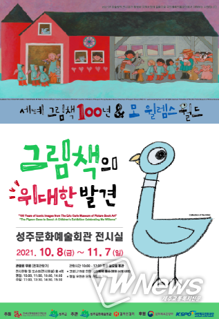 이번 전시는 10월 8일부터 11월 7일까지 한달간 문화예술회관 전시실에서 개최 되고『2021 전시공간 활성화 지원사업』공모에 선정된 작품으로 그림책 100년사 작품들을 비롯, 국내에 '내 토끼 어딨어?'와 미국 TV 교육프로그램인 '세서미 스트리트' 등으로 잘 알려진 스타 그림책 작가 '모 윌렘스' 등 세계적 그림책 작가들의 작품 100여점으로 구성됐다.