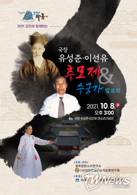 [제주교통복지신문 김지홍 기자] 명창 유성준·이선유 판소리기념관은 8일 하동군 악양면 하중대길 소재 판소리기념관에서 국창 유성준·이선유 추모제와 함께 수궁가 발표회를 갖는다고 밝혔다.