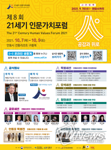 이번 포럼은‘공감과 위로’를 주제로 온·오프라인 병행으로 진행되며, 문화·예술계, 학계, 종교계, 방송인 등 1000여명이 함께 한다.
