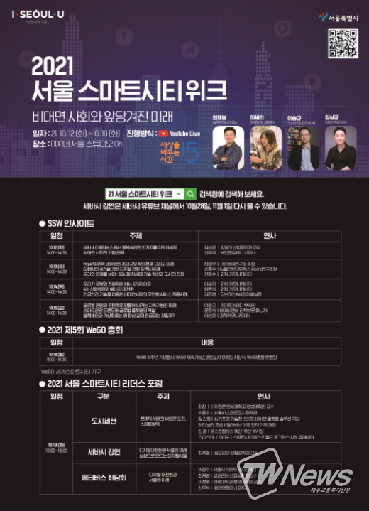 <서울 스마트시티 리더스포럼>은 19일 오후 4시 DDP 서울온 스튜디오에서 열린다. 무관중으로 유튜브 및 공식 홈페이지를 통해 온라인 중계된다.