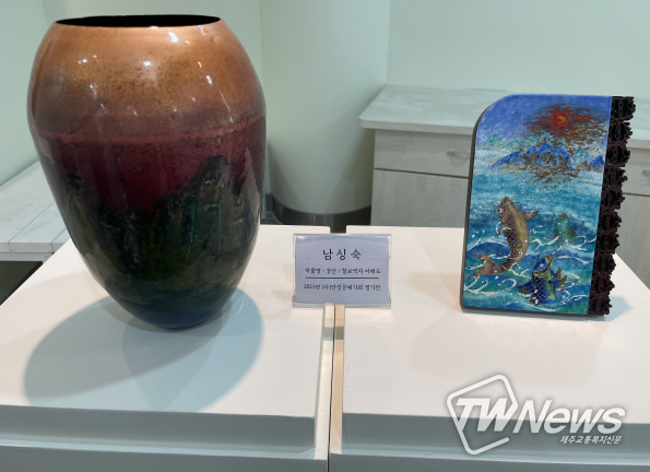 작품은 일상생활에서 활용이 가능한 화병, 여닫이장, 함 등을 선보이며 특히, 프랑스 르브르 박물관 아트페어 전시 참가 작품인 칠보액자 어해도도 전시되어 관람할 수 있다.