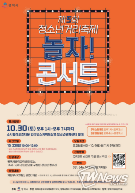 [제주교통복지신문 김지홍 기자] 평택시 위탁기관인 (재)평택시청소년재단 평택시청소년문화센터는 제5회 ‘청소년거리축제 놀자!콘서트’참여 청소년을 모집하고 있다.