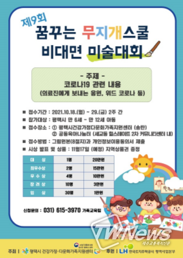 [제주교통복지신문 김지홍 기자] 평택시건강가정・다문화가족지원센터에서는 오는 18일부터 29일까지 비대면 ‘꿈꾸는 무지개스쿨 미술대회’를 실시한다.