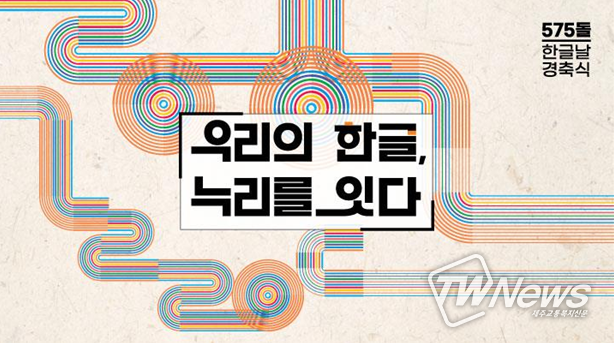 [제주교통복지신문 김지홍 기자] 행정안전부는 오백일흔다섯돌 한글날을 맞이하여 10월 9일 오전 10시, ‘우리의 한글, 누리를 잇다’라는 주제로 한글날 경축식 행사를 사전 녹화된 영상으로 개최한다고 밝혔다.