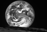 다누리, 달 상공에서 촬영한 사진 공개…'흑백사진 속 둥근 지구'
