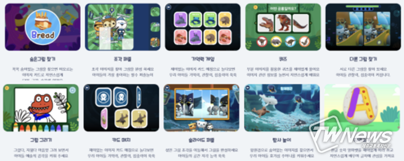 아이들은 해당 서비스를 통해 한글, 영어, 수학, 율동, 공룡, 동화 등 카테고리로 구분돼 수록된 콘텐츠들을 마음껏 즐길 수 있다.