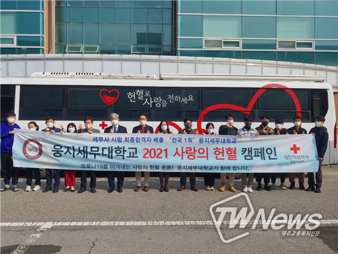 [제주교통복지신문 김현석 기자] 웅지세무대학교는 지난 26일, 서울중앙혈액원과 함께 ‘사랑의 헌혈 운동 캠페인’을 실시했다. 관련 행사는 코로나19 장기화와 수도권 확진자 증가로 인해 혈액 수급이 어려워진 상황을 개선하기 위하여 추진됐다.