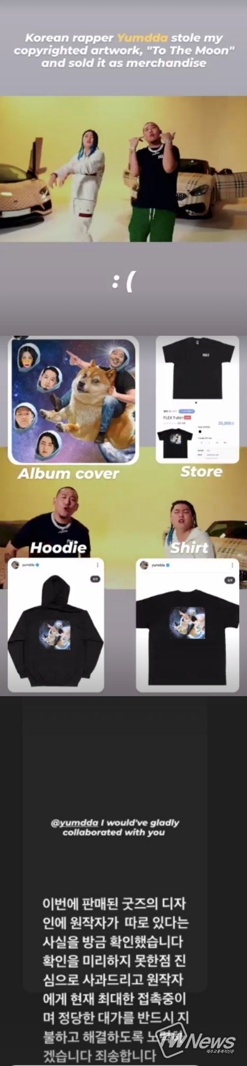 그러자 4일 오전 염따는 자신의 인스타그램 스토리에 “이번에 판매된 굿즈의 디자인에 원작자가 따로 있다는 사실을 방금 확인했다”라는 글을 게재했다.