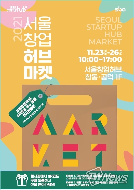 [제주교통복지신문 신혜정 기자] 서울시의 창업지원 기관인 서울창업허브(SBA 운영, 대표이사 김현우)는 스타트업 경영 조기 안정화 지원 및 서울창업허브 활성화를 위한 ‘서울창업허브 마켓’을 서울창업허브 공덕, 창동 2곳에서 11월 23일(화)부터 26일(금)까지 온·오프라인으로 4일간 개최된다고 밝혔다.