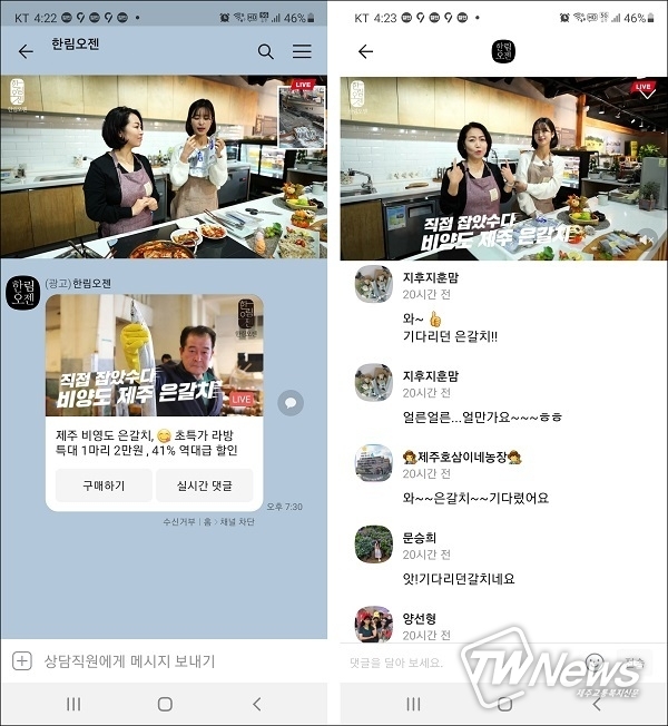 [제주교통복지신문 신혜정 기자] 한림오젠협동조합은 지난 11월 30일 제주 비양도 은갈치 라이브커머스 방송에서 100마리 세트 상품을 선보임과 동시에 완판했다.