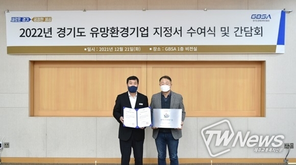 '경기도 유망환경기업'은 경기도 내 우수 중소 및 중견 환경기업 육성을 위해 2014년 도입한 제도로써 기업 비즈니스 전략, 성장 가능성, 기술력 등 총 18개 항목에 대해 평가를 거쳐 최종 선정하게 된다.